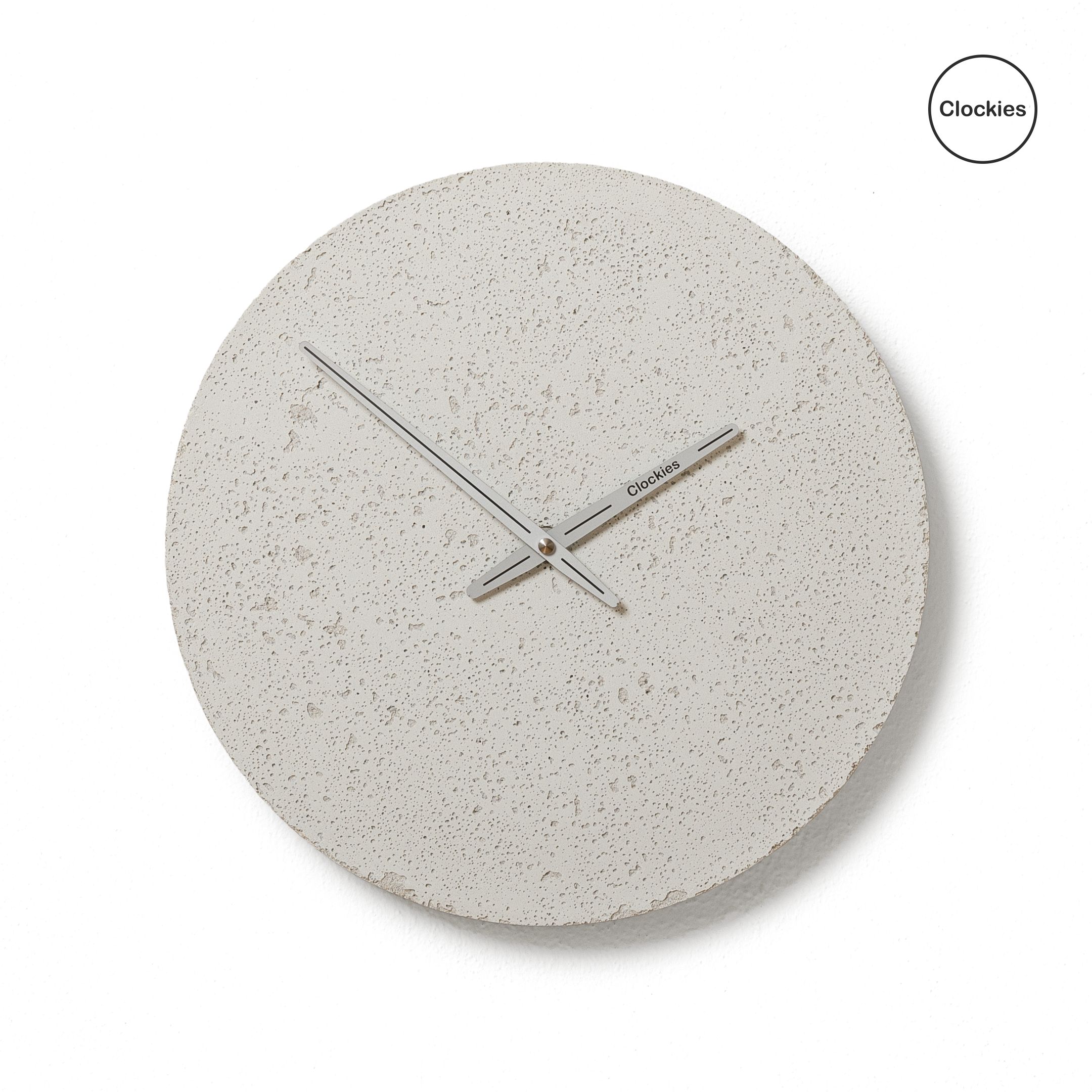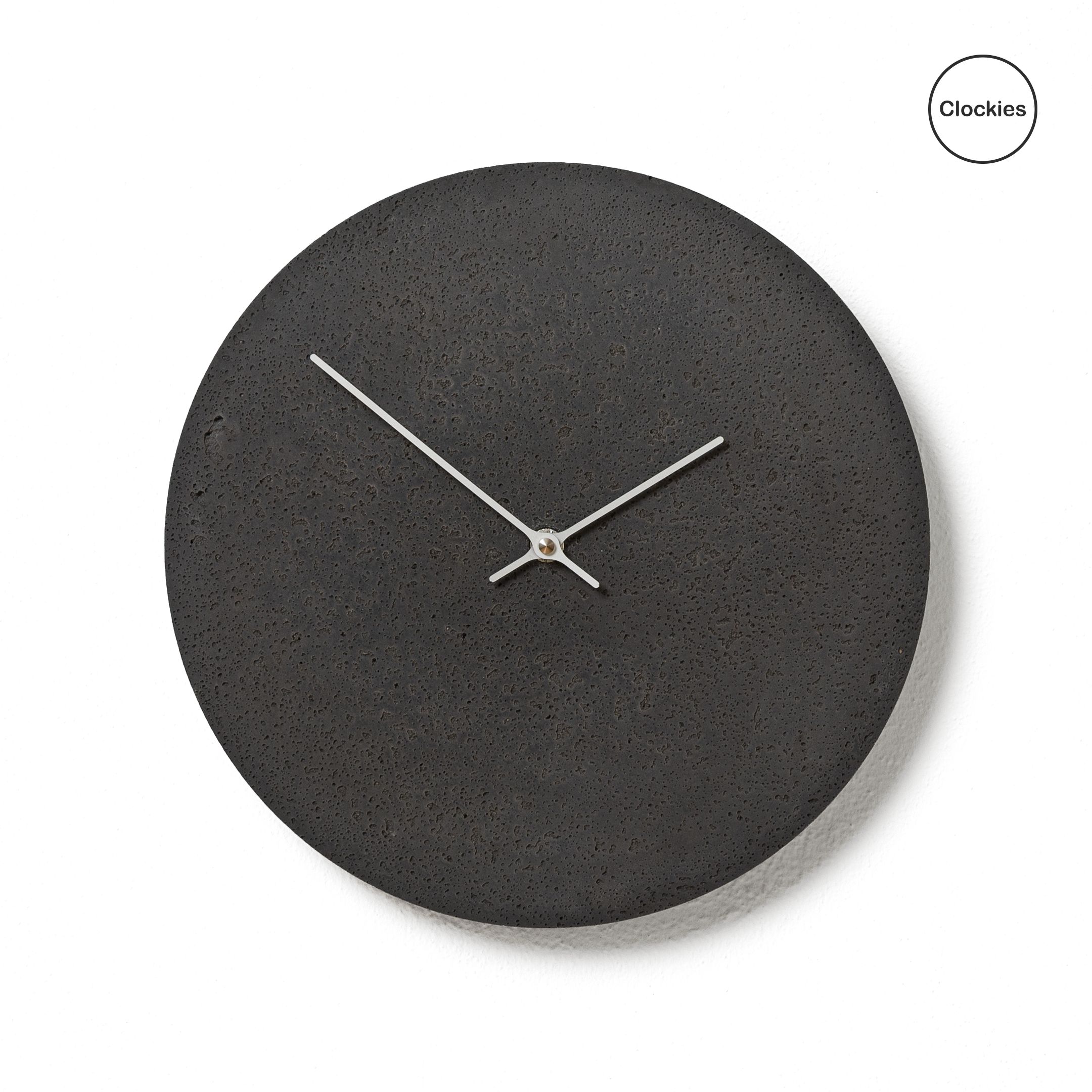 Břidlicové nástěnné hodiny ve tvaru kruhu se stříbrnými rafičkami z eloxovaného hliníku.