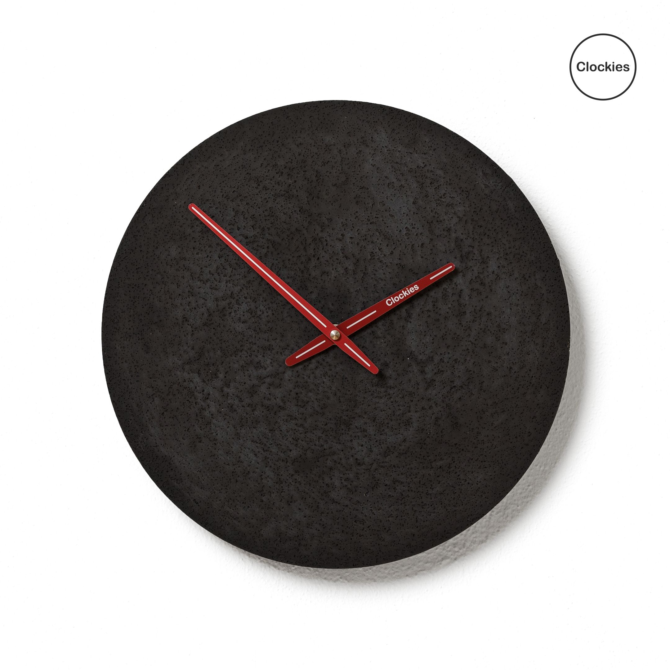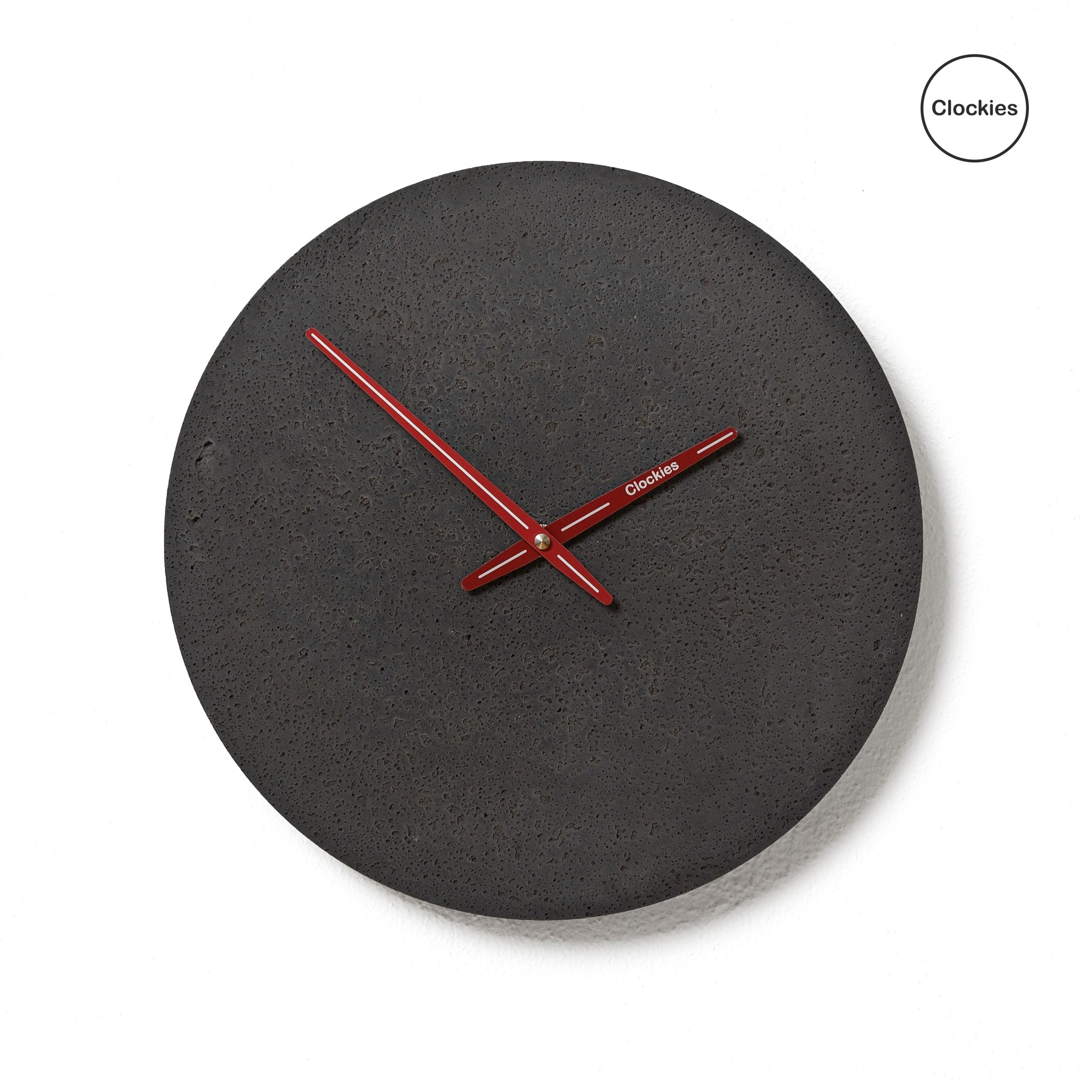 Břidlicové nástěnné hodiny ve tvaru kruhu s červenými rafičkami z eloxovaného hliníku s gravírová...