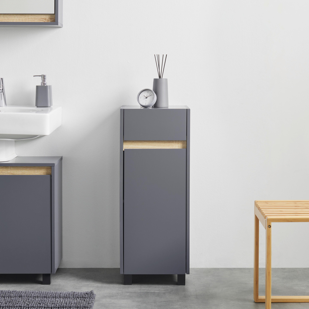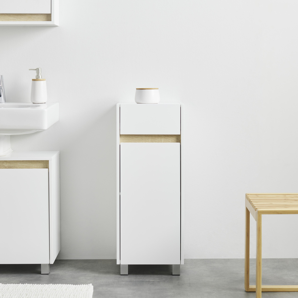 Nízká skříňka do koupelny ve skandinávském stylu s 1 dveřmi, 1 policí a 1 zásuvkou na drobnosti.V...