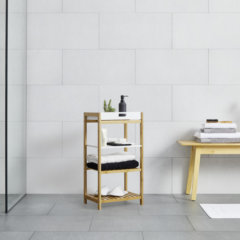 Tento artikl je k dispozici pouze ONLINE. Trendový regál v bílé barvě z MDF a bambusu nabízi nabí...