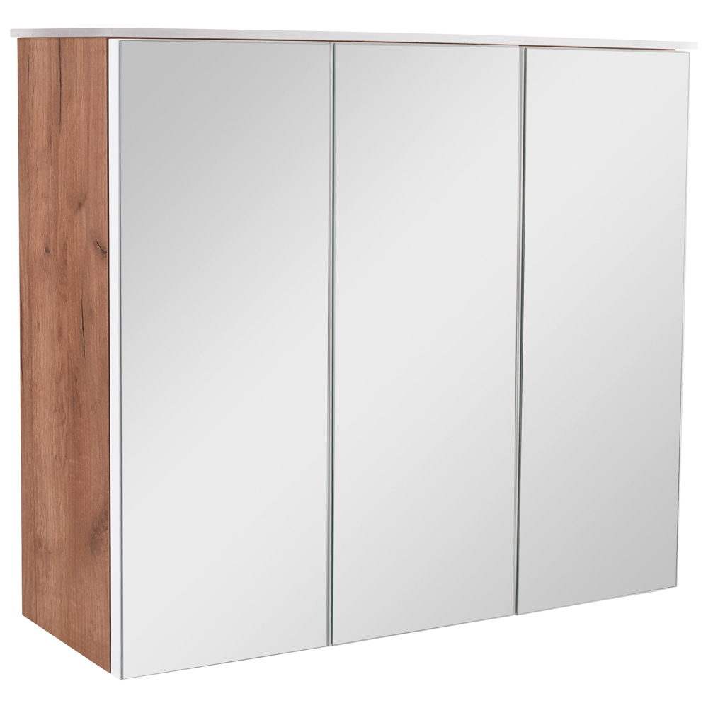 Skříňka se zrcadlem v dekoru dub Kraft tmavý/bílá vysoký lesk, se 3 zrcadlovými dveřmi, s jemným ...