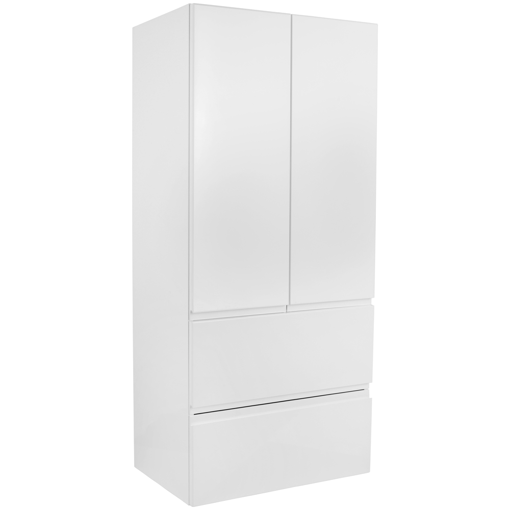 Midi skříňka v bílém dekoru, vysoký lesk, 2 dveře, 2 zásuvky, tlumené dovírání, včetně 2 vkládací...