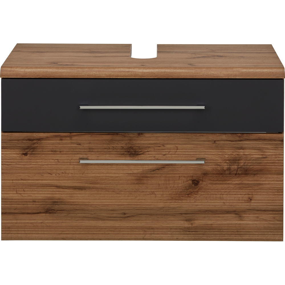 Skříňka pod umyvadlo s korpusem v dekoru dub Wotan zásuvky dub Wotan s vroubkovaným povrchem/antr...