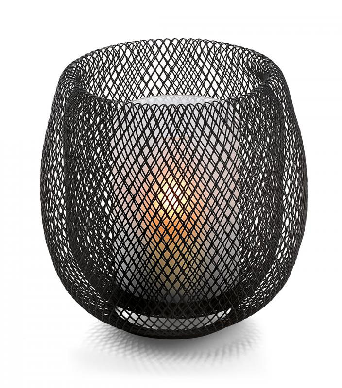 Zapálená svíčka ve svícnu Mesh vytváří fascinující scenérii v interiérech i exteriérech. Svícen P...